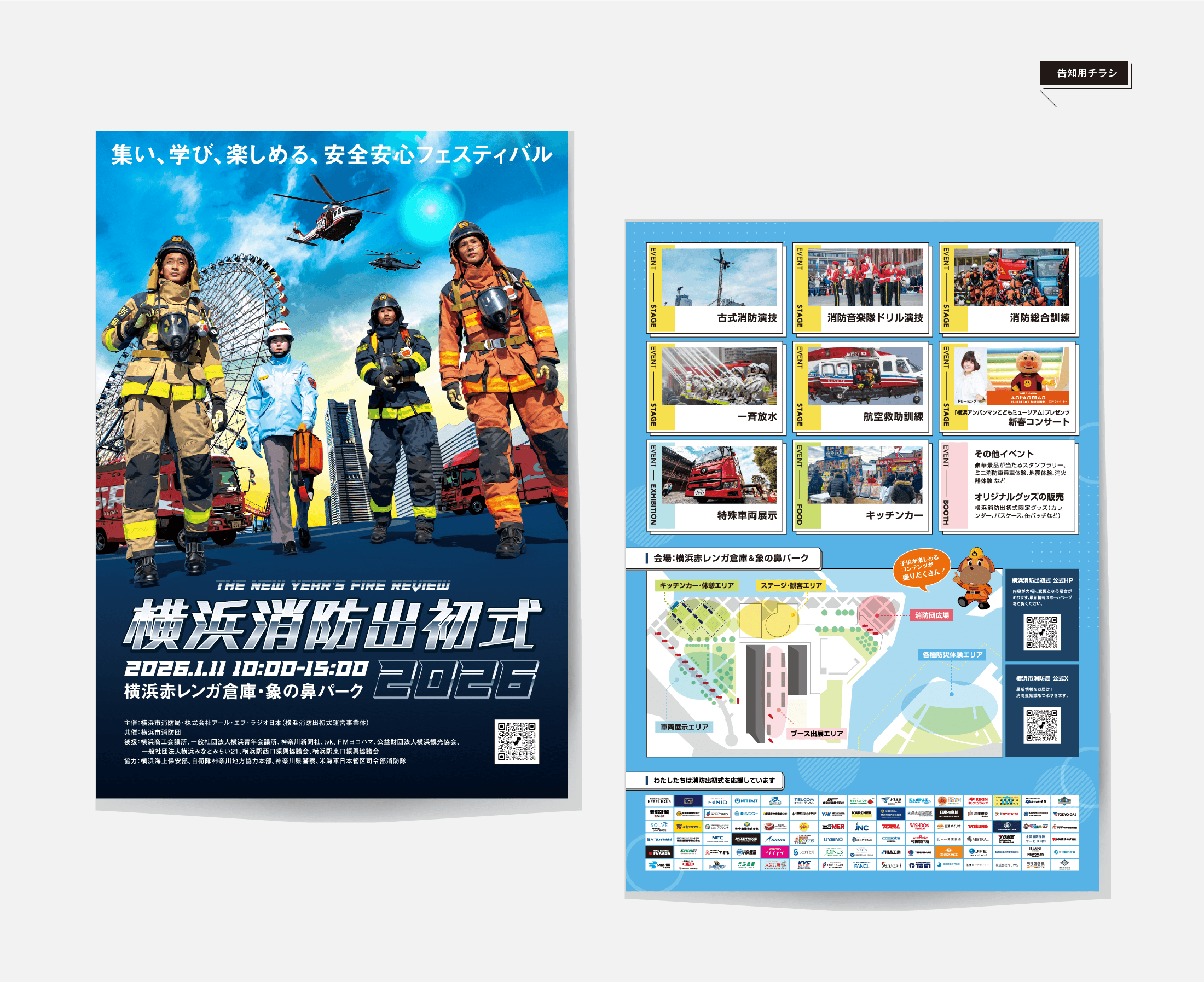 2026年1月11日に赤レンガ倉庫で開催された『横浜消防出初式2026』の、告知用ポスター・チラシ・パンフレットを制作させていただきました。